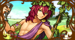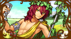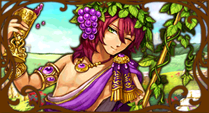 - 初期状態 :豊穣、葡萄酒と酩酊を司る神。葡萄酒の製造方法を人々に伝え、造られた美味しい酒を飲むのが好き。落ち着いた性格だが、酔うと…?