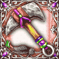 魔神戦時、確率で、同時に装備しているバビロニア地域の神装備の防御力UP!【スペルレベルMAX時、発動率25%・防御力13%UP】 - 青銅でつくられたメイス。無駄が省かれ、振り抜く力を最大限に利用できる。