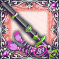 魔神戦時、確率で、魔神に与えるダメージがUP!【スペルレベルMAX時、発動率45%・ダメージ2倍】 - 銀色に光るククリ。残影は美しく、鋭い切れ味を誇る。