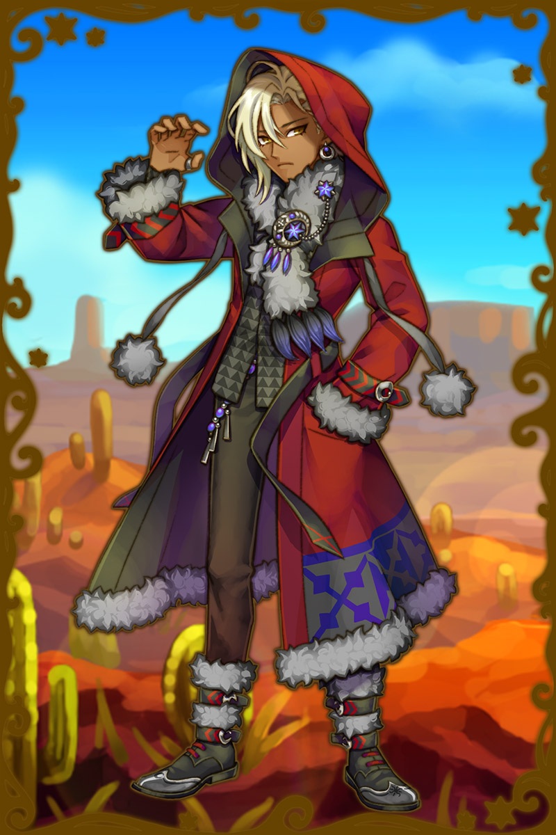 - 暇してんなら、オレとデートでも行く?恥ずかしがらなくたっていいよ、すぐに手出したりなんかはしないからさ。…んー、そうだな。赤土の大地を一望出来る場所があるからそこに行くのなんてどう?開放的な気分にもなれるし、オレのオススメの場所なんだよね。(親密度後半)