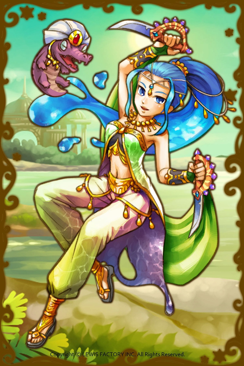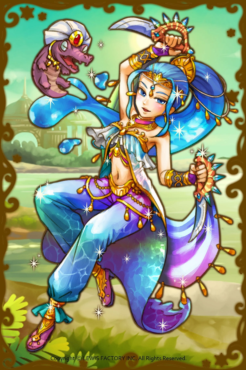 - 初期状態:ガンジス川をあらわす女神。乗り物であるワニのクンビーラを連れている。踊りが得意でクールな印象だが、可愛らしい一面も…?