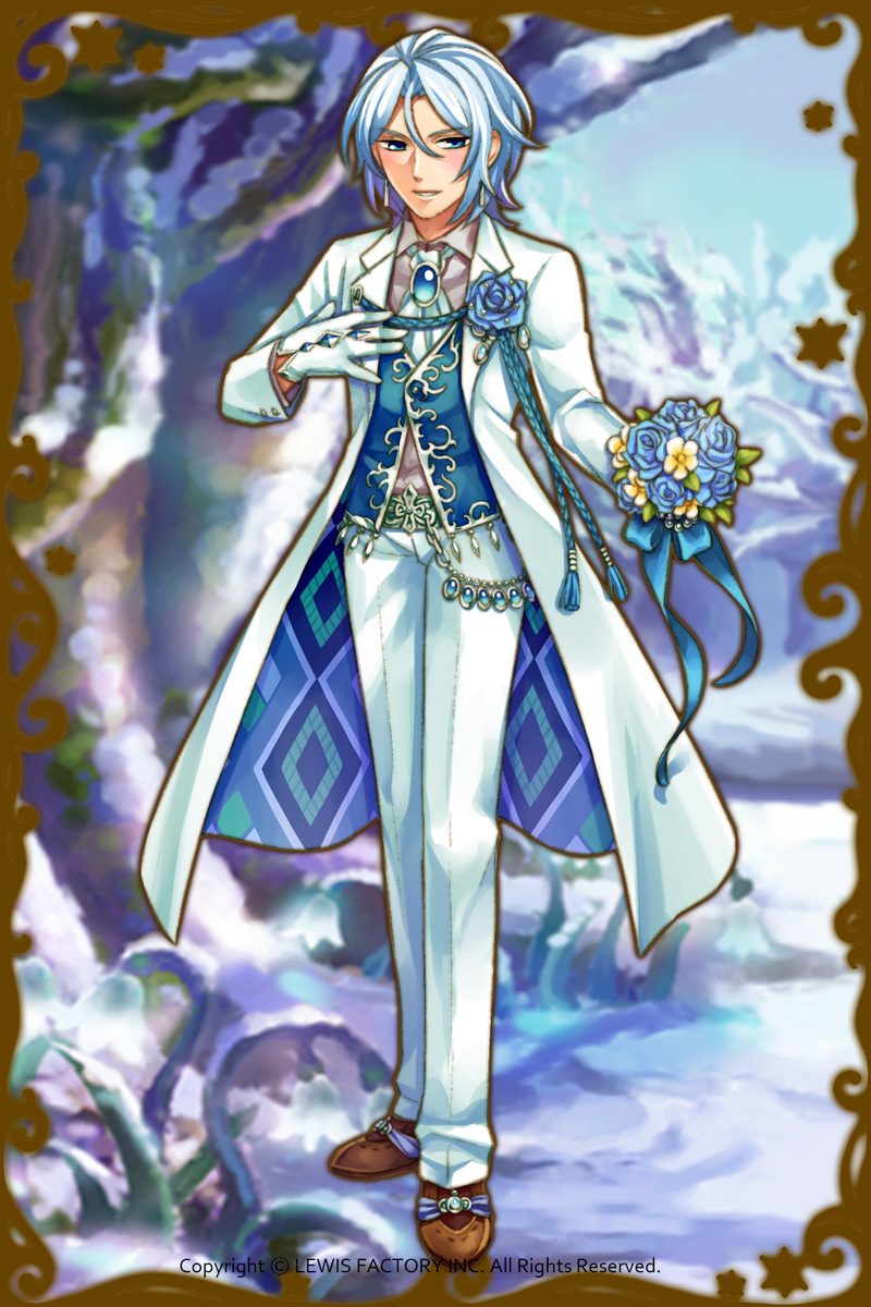 - もしも花嫁を見つけたら?もちろん、プロポーズするよ!これで上手くいかなかったら…いや、俺がこの衣装な上にお前がついていてくれているんだ…上手くいかないわけがない。あぁ、花嫁専用の部屋を作って、いつでも鑑賞ができるようにしたいし、大切なものだからと自慢をしたいんだ。…変だろうか?(親密度後半)