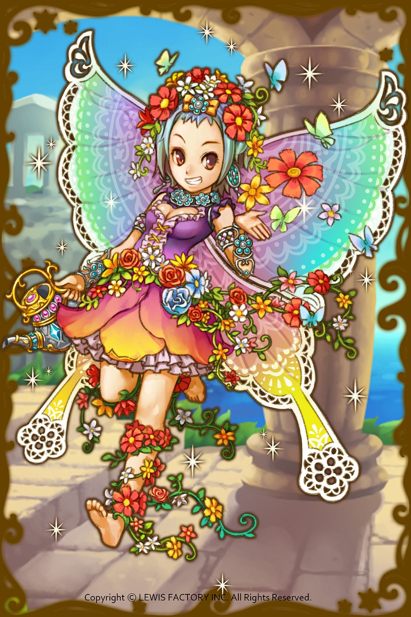 - 初期状態 :花と春と豊穣を司る女神。自分の花園にいっぱいの花を育てるのが趣味で、妖精のような羽を自慢にしている。見た目は大変可愛らしく表向き良い子だが、ちょっぴり腹黒い。
