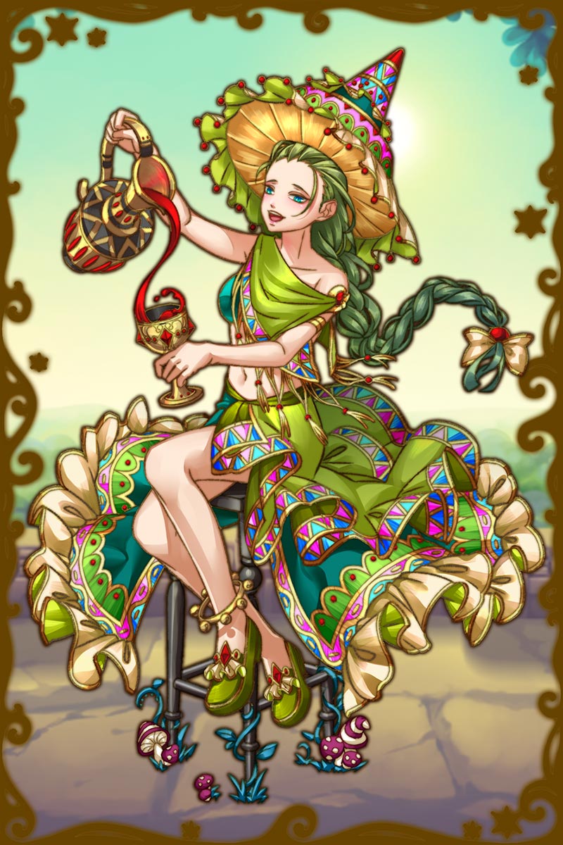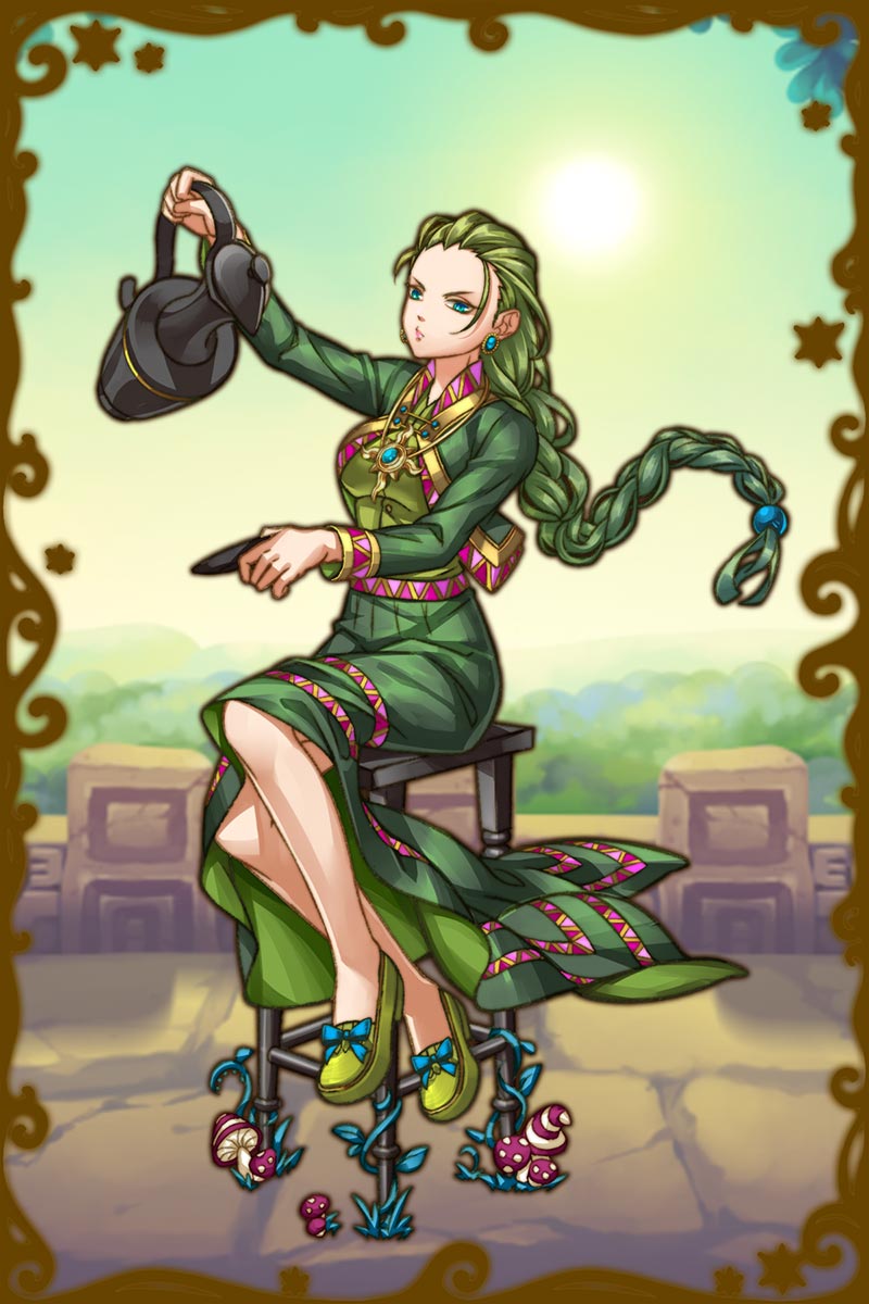 - 初期状態 :豊穣を司る大地の神。全てのものの母とされ山や川など大地のすべてを表す。 酒好きで常に酔っぱらっている。気さくな性格で誰とでも仲良くなることができ、テンションが高い。あまり悩みはない方らしい。