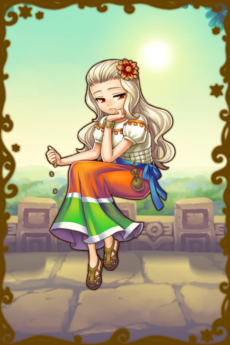 - 初期状態 :チッテー豆で占いをする女神。太陽の祖母といわれている。有能だが基本的にやる気がなく、ぐうたらしている。外見と精神年齢が一致しておらず、幼い見た目をしているにも関わらず達観した感性を持っている。興味を持った相手には、見た目相応に子供らしく振る舞って、からかうこともあるという。