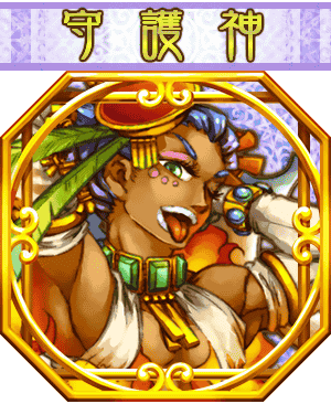 - 初期状態:戦いの神。見た目に反して心は優しい乙女。しかし暑苦しいので、人懐こくハピやバステトに絡んではいつも逃げられてしまう。アヌビスとコノハナサクヤの女子会に入りたがっている。