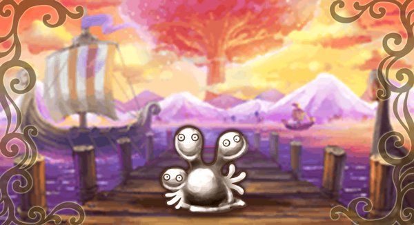 - (クリア時)目を凝らして歩いていると、船から降ろされた荷の影に巨体を見つけた。間違いない、フルングニルだ!