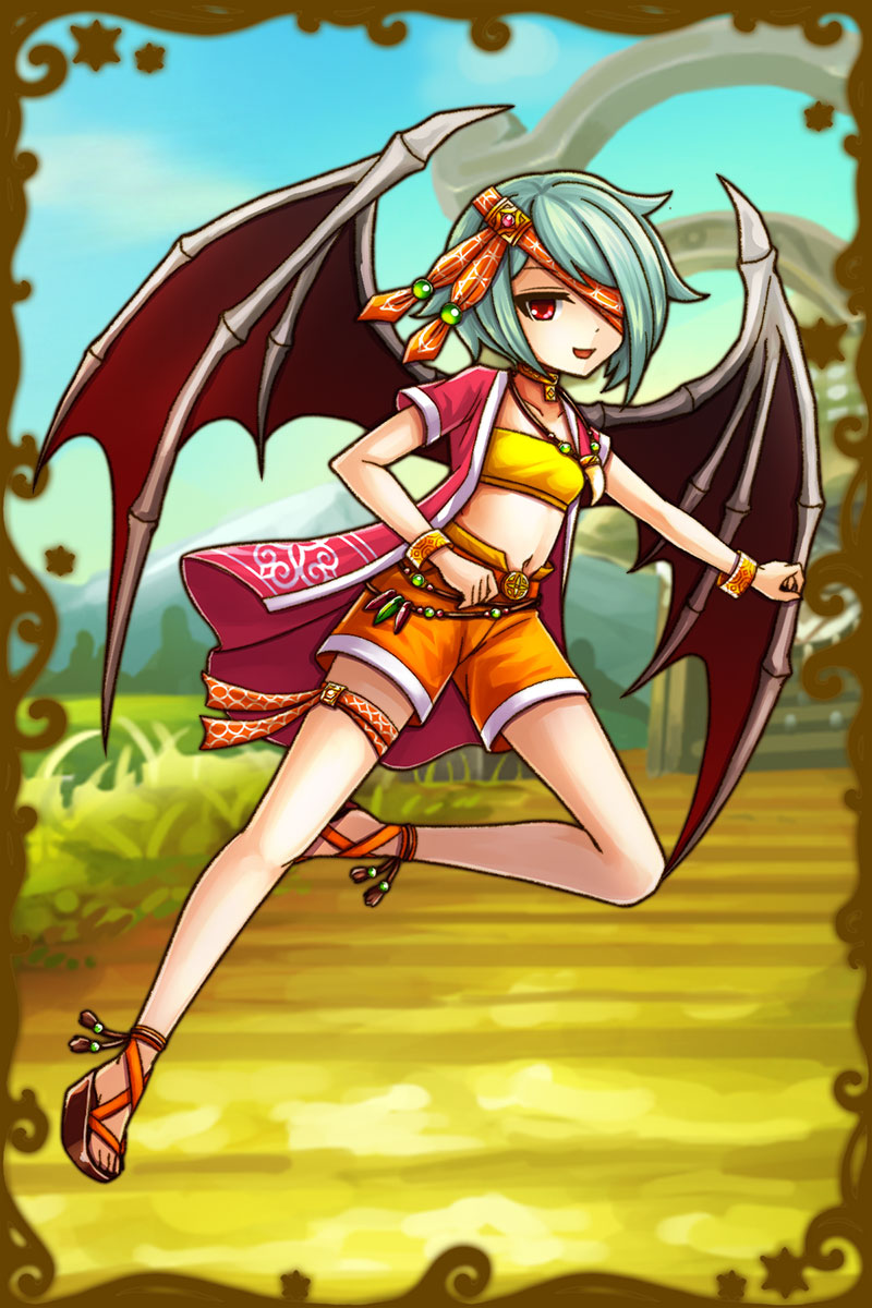 - 初期状態 :山の中に棲んでいる化け物と言われており、空を飛ぶことができるとされる。悪戯っぽく楽しいことが好きな性格。飽きっぽく、やりたいことがコロコロ変わるタイプ。神出鬼没で、様々な場所に移動しているため、かなりの情報通。