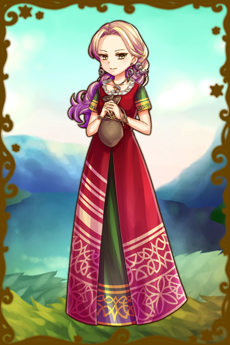 - 初期状態 :月と馬の女神。金の髪を持つ美しい女神で、ダヴェトの大公プイスの妻。プイスのことが大好きで、常に彼のことを考えている。その美しさから、結婚しているにも関わらず他の男に言い寄られることが多く悩みの種になっている。