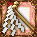 - 日本の儀式に用いられる道具。神が使えば、どんな邪悪も打ち払う。