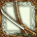 - 切れ味鋭い剣。革で巻かれた部分には呪文が刻まれているらしく、神の力に呼応して強くなる。