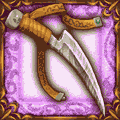 - 赤い刀身の鎖鎌。素早く攻撃し、敵を絡め取ることもできる。