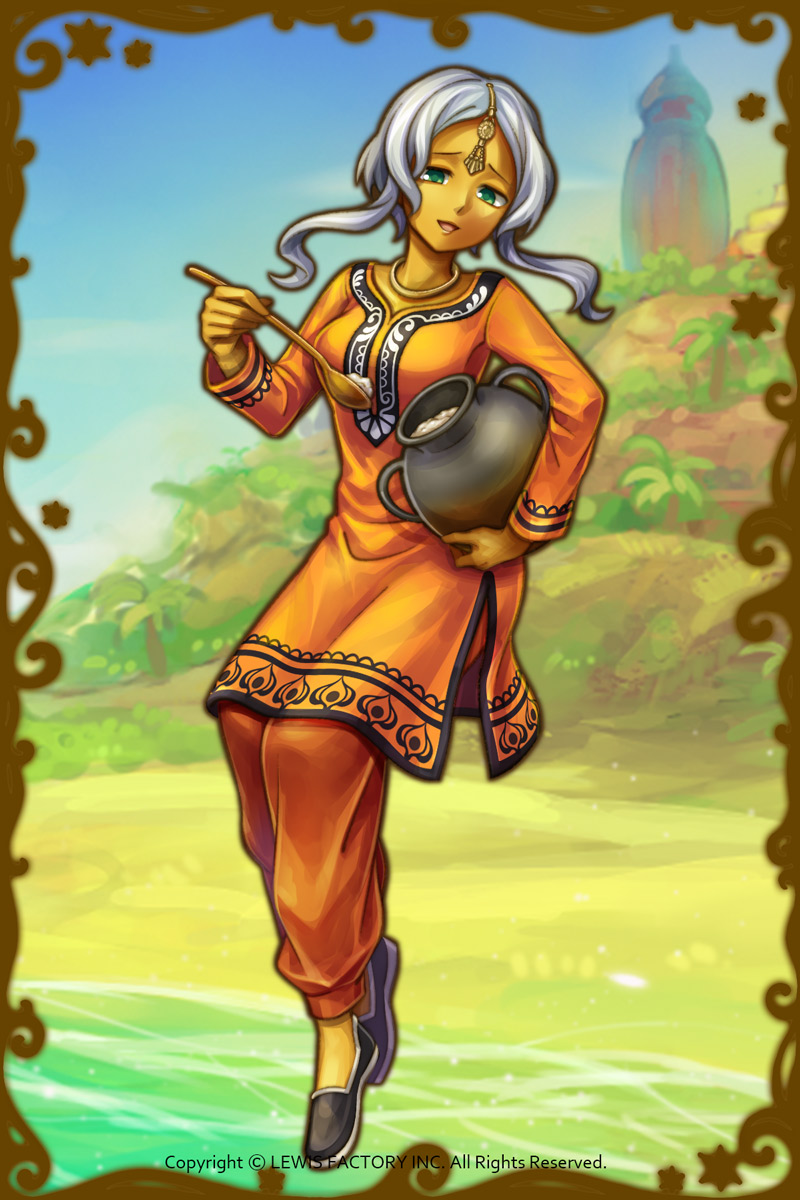- あの小山のてっぺんに立っている木、とても立派でしょう?ジャガンナートが育てたよの。毎日欠かさず水をあげて、声を掛けて、あそこまで大きくしたの。ひとつのことを毎日続けて、やり遂げるというのは立派なことよねぇ。あの木を見るたびに、ジャガンナートのことを思い出すの。ふふふ。(親密度後半)
