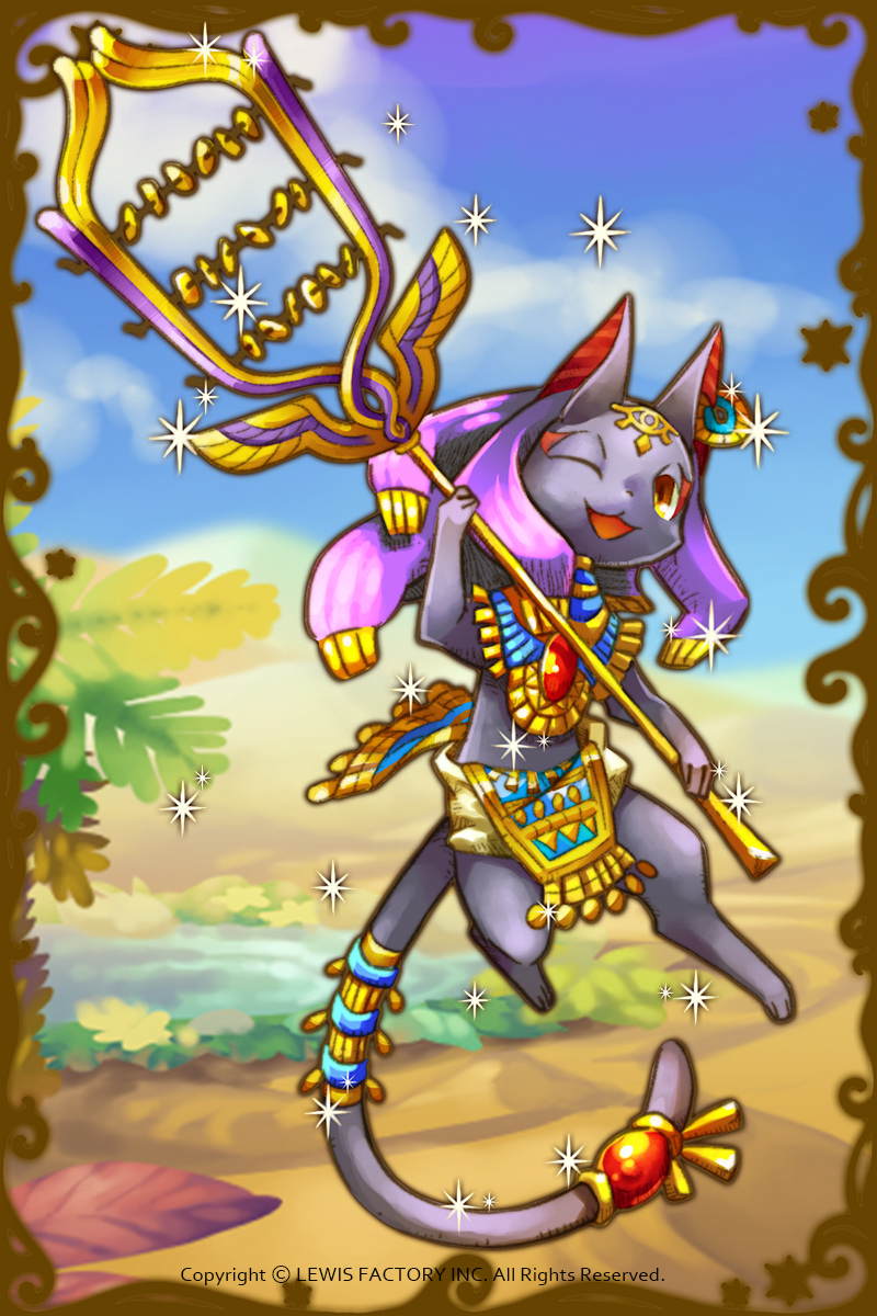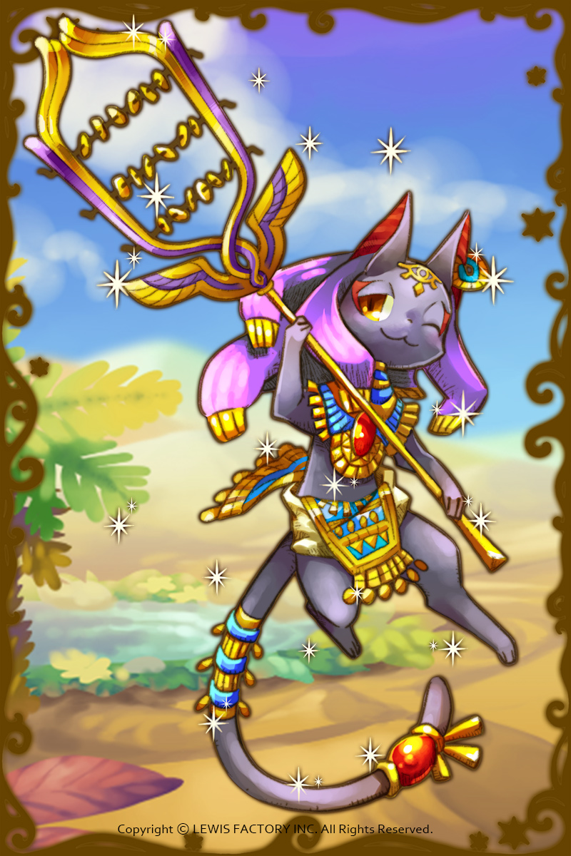 - 初期状態:猫の姿をした神で、豊穣を司っている。彼の奏でる音楽は不思議な効果を生み出すという。