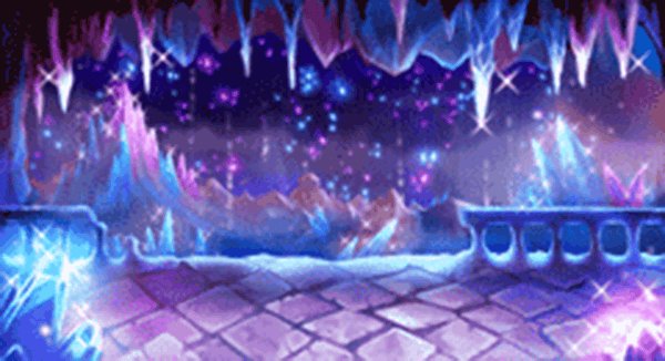 - (挑戦時)輝く階段を上ると、今まで以上に大きく伸びた水晶が暗闇の中であちこちで色とりどりに光り輝いている。空気も今まで以上に重くのしかかってくる。