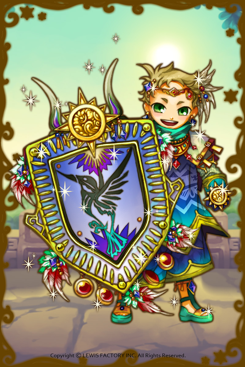 - この盾、かっこいいでしょう?ボクにぴったり!…え?ちょっと大きい?そ、そんなことないよ。ボクもう一人前だもの!(親密度後半/mixi、GREE)