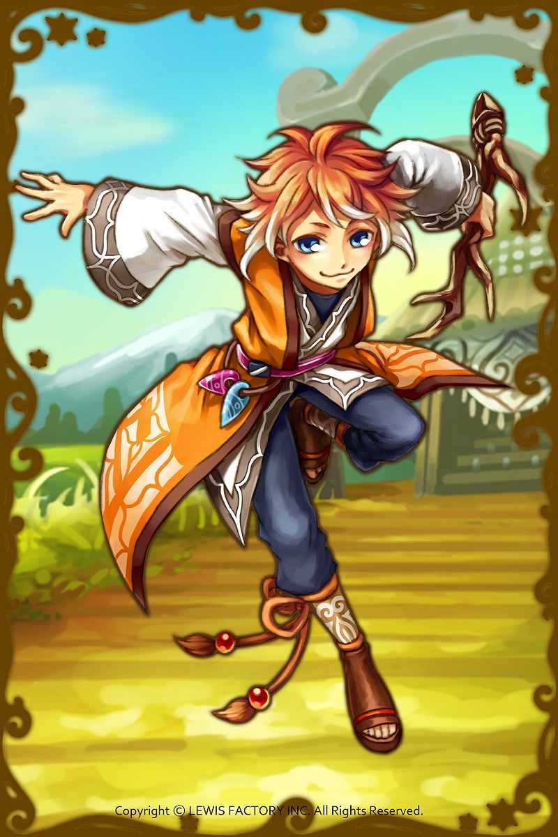 - ……っしゃー!いたずら成功!にしし、その絵、そっくりだろ!?名付けて魔神ドッキリ…えっごめんごめん!そ、そんなに驚くと思わなかったんだよー!ごめんってー!(親密度前半/GREE)