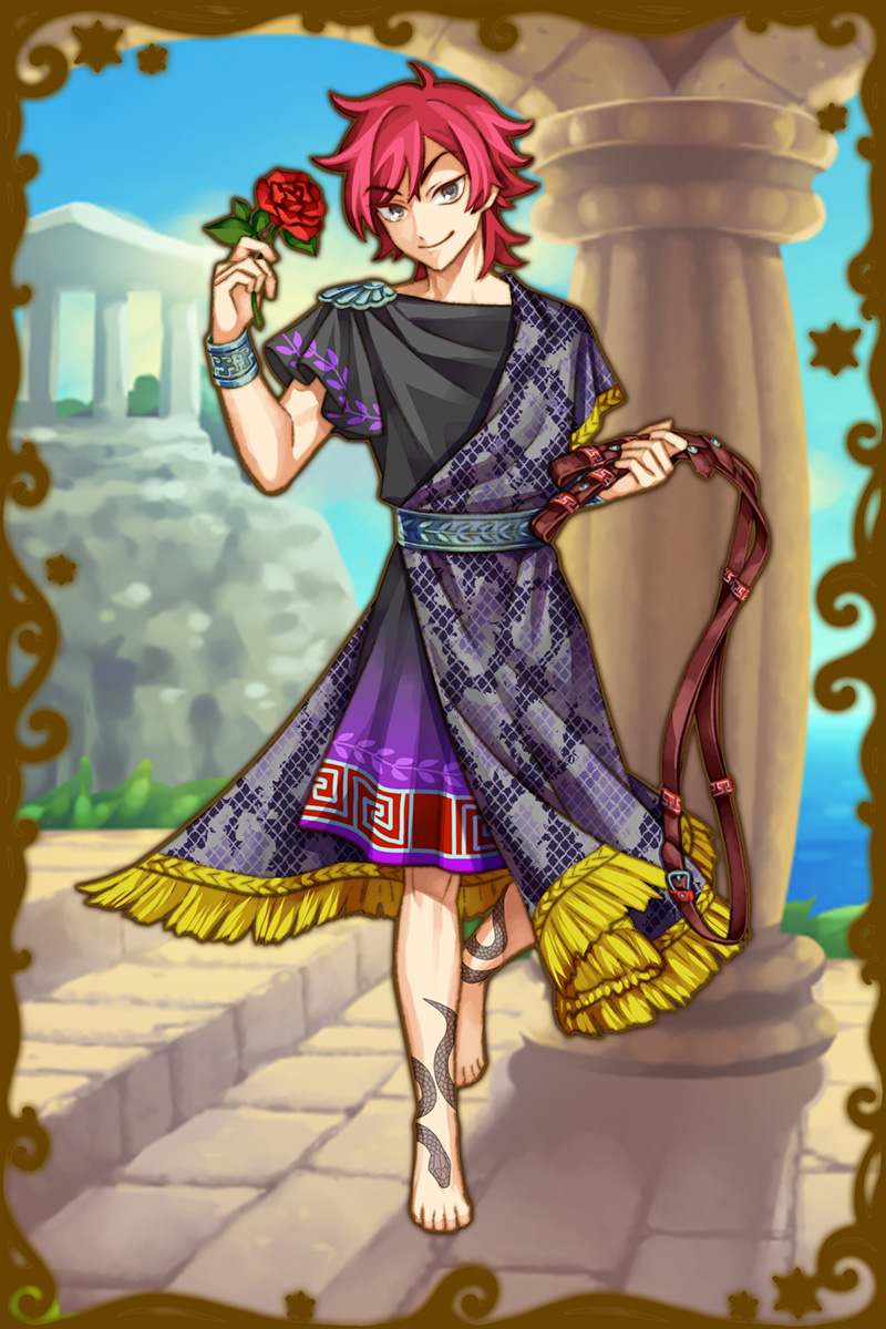 - 初期状態 :アテナイの神話王。派手好きでにぎやかな性格。根が明るく、多少ナルシストの気がある。自分を嫌う相手などいないと思い込んでいるのでいつでも前向き。記念日を大切にしており、どんな些細な出来事でも記念日にする。なんでもパーティーやお祭りにしてはしゃぐのが好き。