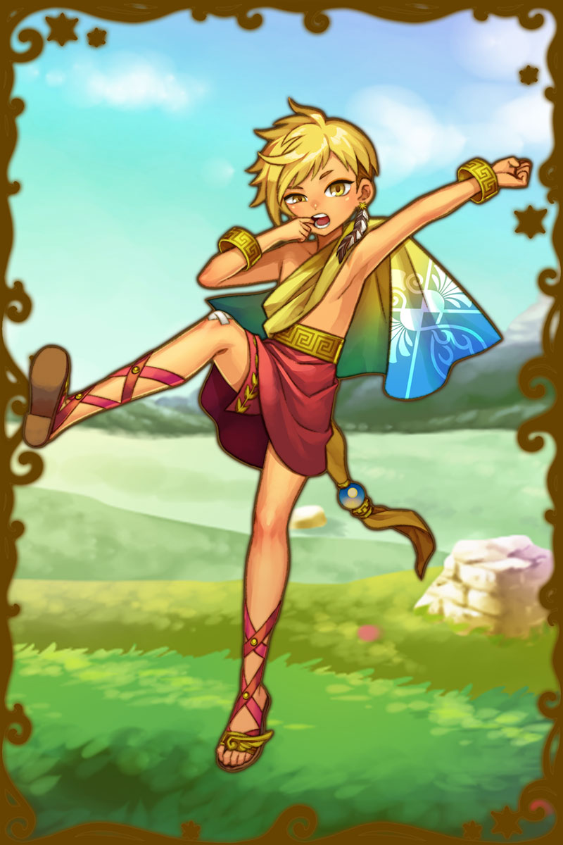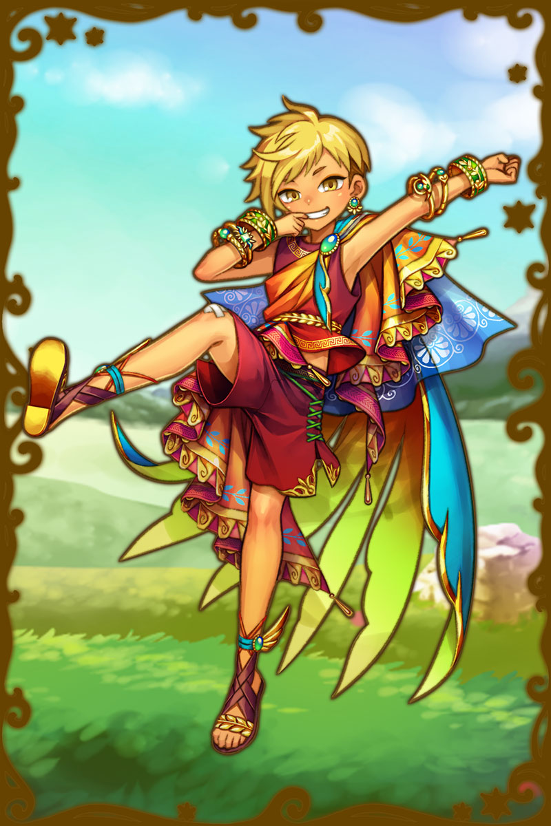 - よっ、と!どんどん魔神を倒して、この土地の平和を守らなくちゃな!俺としては、いたずらして楽しく過ごせたらそれでいいんだけど、そのためにも、魔神は倒さなくちゃいけないし、平和は守りたいよなって思う!さぁて、次はどこにいる魔神を倒す?頑張って倒しちゃうぜ!(親密度後半)