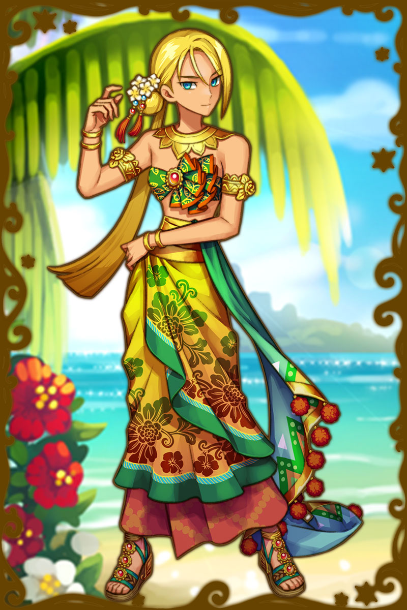 - 初期状態 :稲、豊穣、子宝を司るインドネシアの土着の神。表面上はサバサバしているが、情は深いため困っていれば手を差し伸べてくれる。来る者拒まず、去る者は追わずなタイプ。心を許した相手にだけ、拗ねる、怒るなど、感情の起伏が激しくなる。バリ・ヴィシュヌとは特別な関係である。