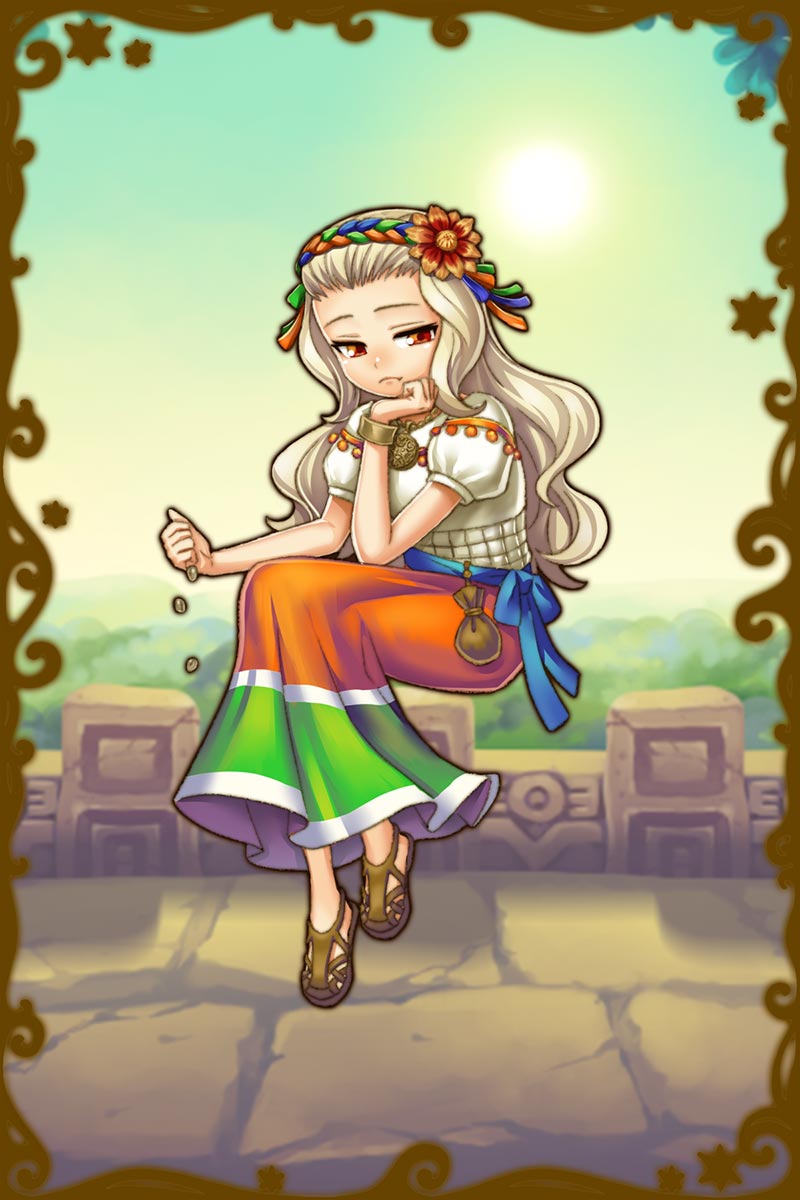 - 初期状態 :チッテー豆で占いをする女神。太陽の祖母といわれている。有能だが基本的にやる気がなく、ぐうたらしている。外見と精神年齢が一致しておらず、幼い見た目をしているにも関わらず達観した感性を持っている。興味を持った相手には、見た目相応に子供らしく振る舞って、からかうこともあるという。