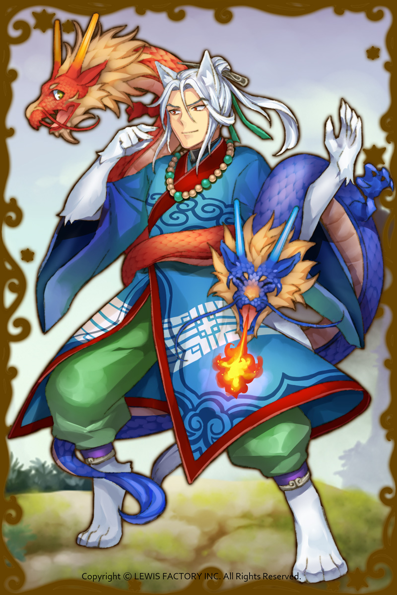 - 初期状態 :古代中国の火と南の方位を司る神。常に全力で真っ直ぐな性格だが、鬱陶しがられることも多く気にしている。龍を大切に思っており、龍をいじめる相手は許さない。女性は意識しすぎて緊張してしまう為、とても苦手。