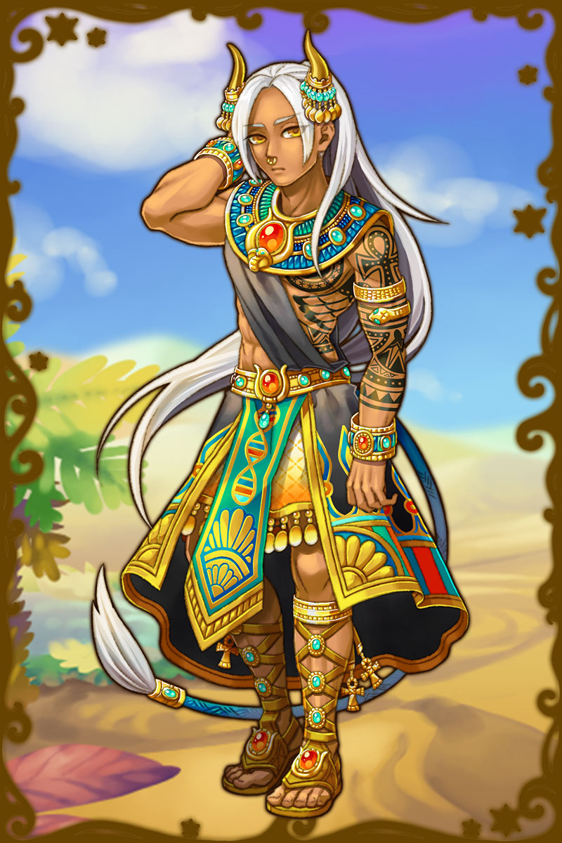- 初期状態 :聖なる牛。オシリスの牡牛とも呼ばれる。普段はぼんやりしていて、あまり大きな反応をしないタイプ。一度火がつくと、猪突猛進に進む。穏やかな性格で、大抵のことは怒らずに、気にも留めない。