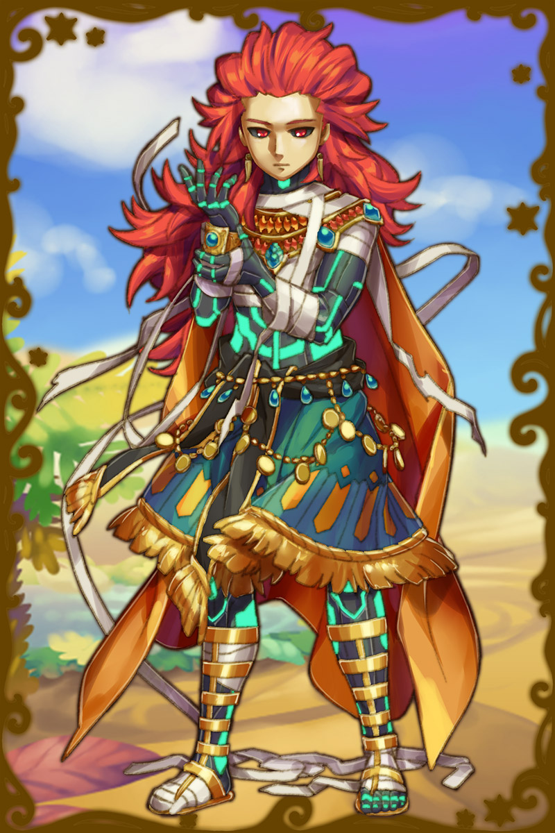 - 初期状態 :雄ライオンの顔を持ち3つの頭と4本の腕を持つ形で表された神。冷静沈着で、機械的な性格。他人の感情を分析することはできるが、理解することはできない。歌や絵など文化的なものを理解できず、データとしての情報処理のみ可能。徹底的に無駄を省き、常に最善の行動を取る。そのためには多少の犠牲はいとわない。