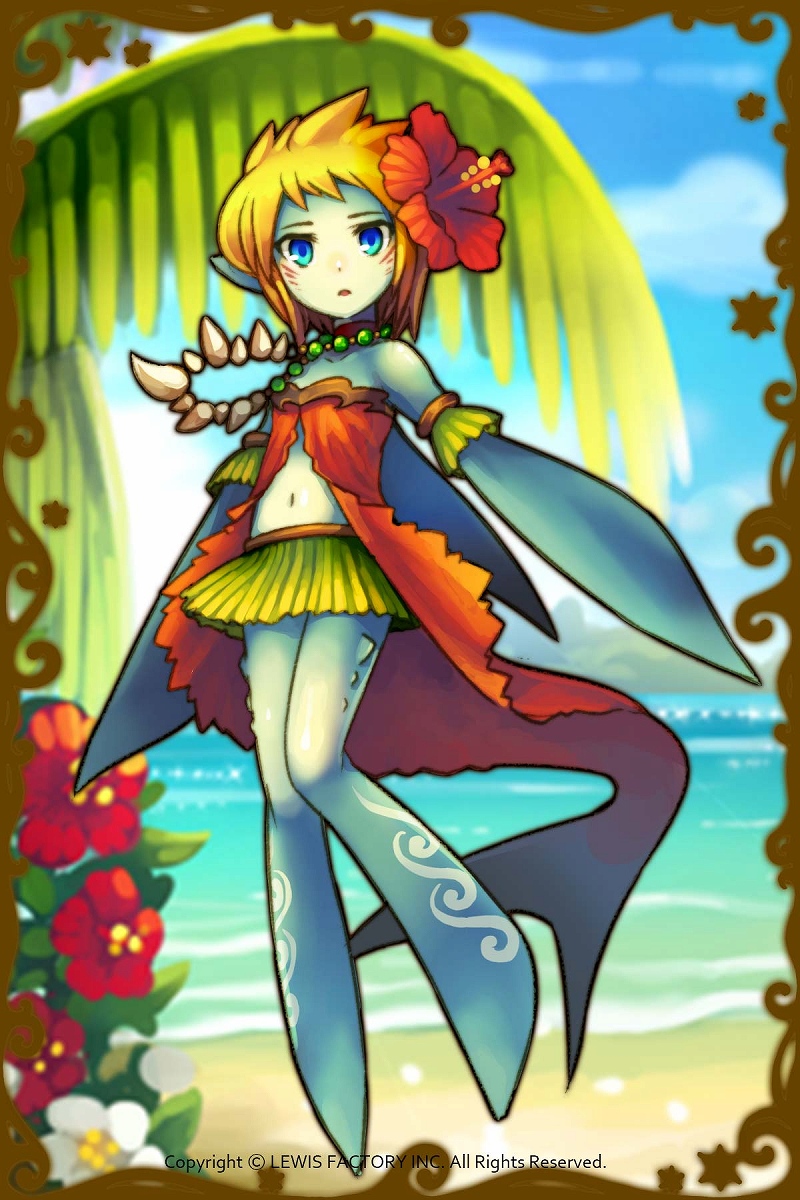 - 初期状態 :サメの姿をした、南国の海の神様。何ものにもとらわれず、我が道をいく女の子。あまり感情を表さないが、お肉の前でだけは別。