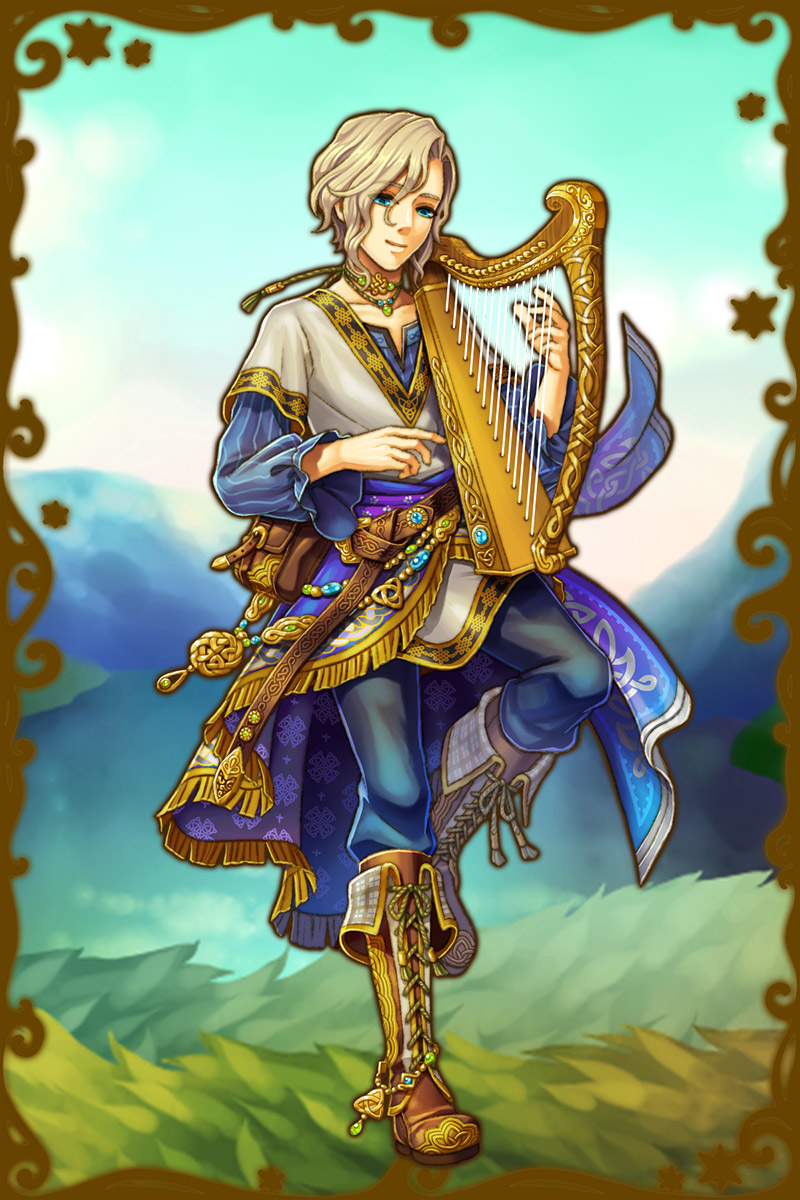 - 初期状態 :アーサー王の宮廷詩人。「輝く額」を意味する。音楽に対してとことんストイックで、妥協しない。自分の容姿に寄ってくる相手は苦手だが、必要とあれば顔の良さを利用することも厭わない。TPOをわきまえているため普段は上品に過ごしているが、素はバカ騒ぎもできる。