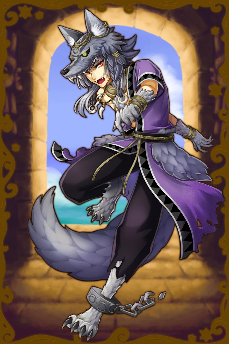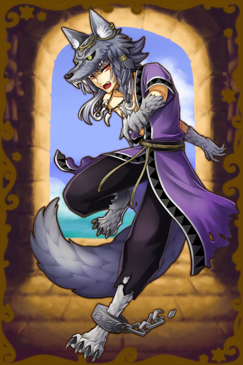 - ……頭の被り物…?……あぁ、これか。…これは昔に討伐した、ただの狼の頭だ。……大したものでもなくて残念だったな。…そんなに物珍しいか?こう言った装飾を纏っている神は別にたくさん居るだろう…。……この被り物が温かいか、だって?……さぁな。(親密度前半)