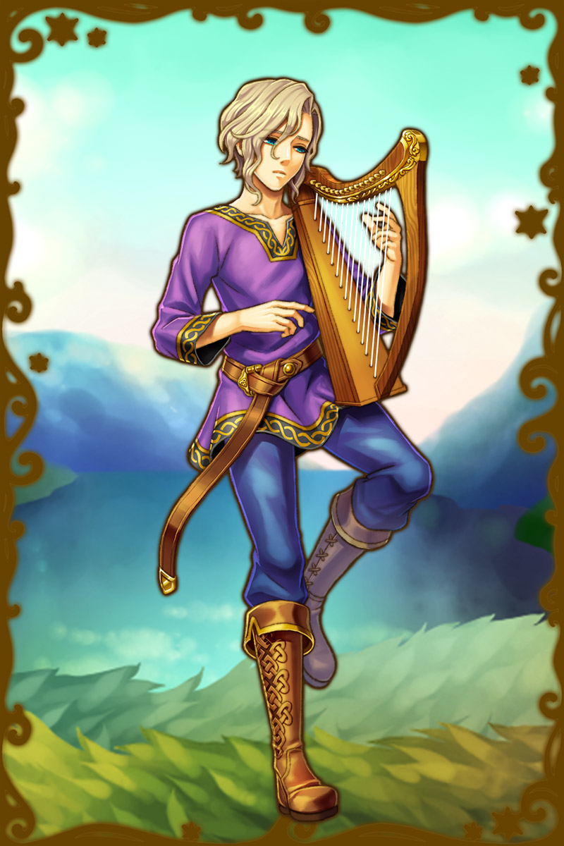 - 初期状態 :アーサー王の宮廷詩人。「輝く額」を意味する。音楽に対してとことんストイックで、妥協しない。自分の容姿に寄ってくる相手は苦手だが、必要とあれば顔の良さを利用することも厭わない。TPOをわきまえているため普段は上品に過ごしているが、素はバカ騒ぎもできる。