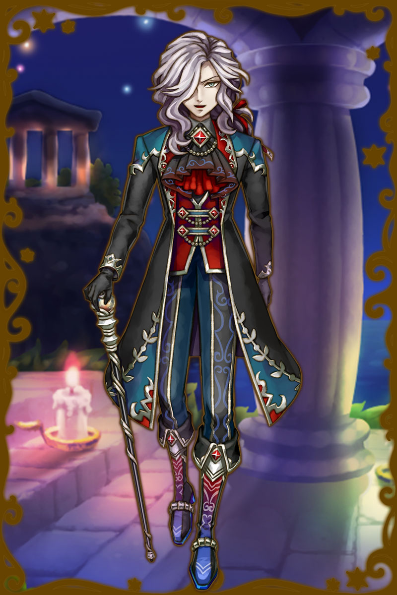 - 俺が誰なのか…と?下らない質問をするな。その質問に対して俺が答えてやったとして、その答えを疑いもせずに信じるつもりか?やれやれ…愚の骨頂だな…。言っておくが、今はまだ俺の全てをお前に明かすつもりはない。興味があるというのなら、自身で探り、自分の力で俺の正体を暴け。(親密度前半)