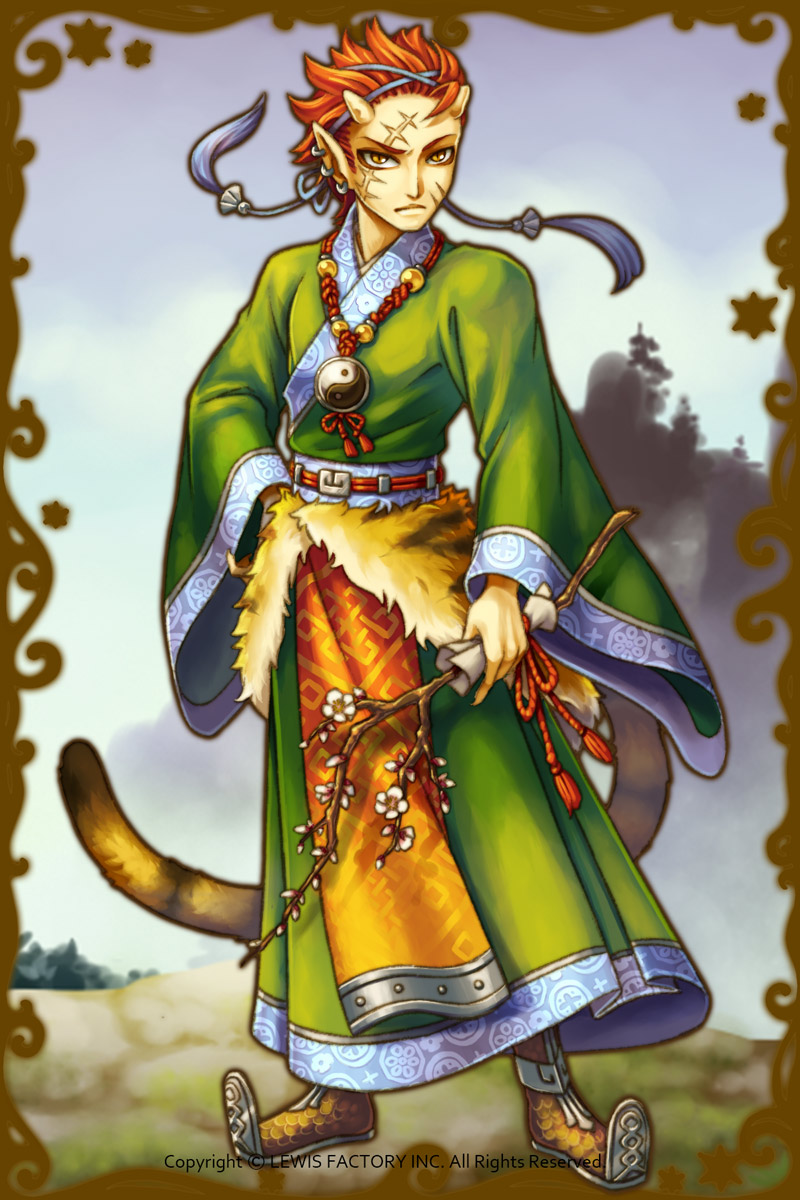 - 初期状態 :武道のみではなく、知識も豊富な雷神。日々の鍛錬を怠らず、無口で真面目な性格。今回は正装を纏っており、いつもより背筋が伸びているようだ。お酒が苦手なのは相変わらずだが、今日も中国の平和を守っている。