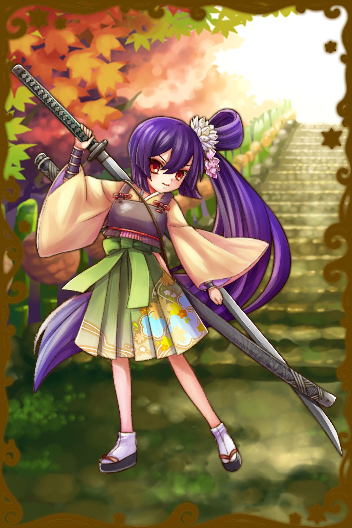 - 初期状態 :礼儀正しく正義感の強い女神で、小さな身体で振るう武器は身の丈はある大太刀。小さいことを気にしており、身長のことに触れると激怒する。男兄弟の中で育ったため、一人称が男の子のようになっているが本人は気にしていない。