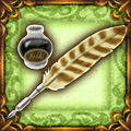 - フクロウの羽根を使ったペン。これで文字を書けば、その文字は呪文になる。