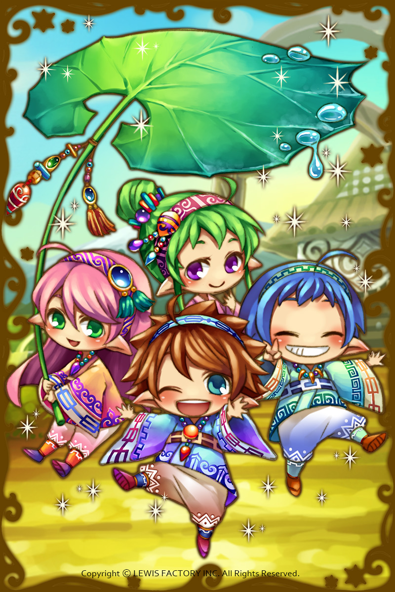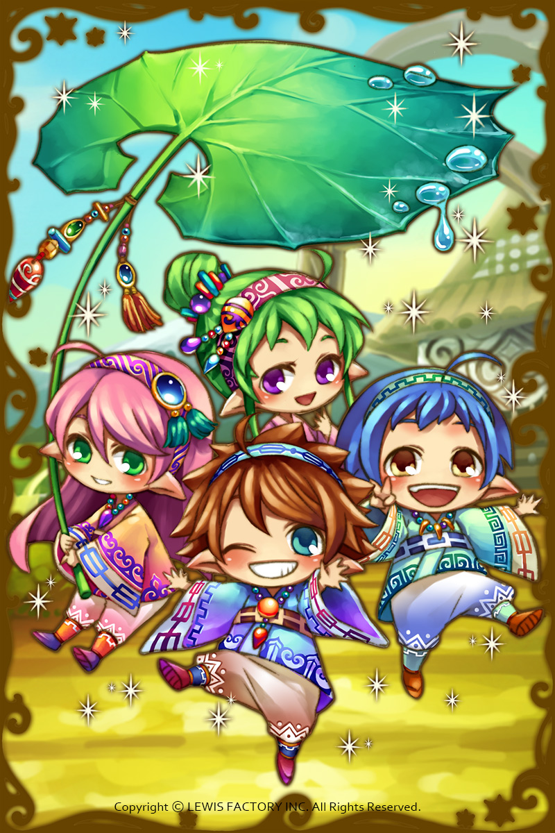 - 第一進化時:アイヌの山や草原に住む小さな神様達。フキの葉の下に少しずつ仲間が戻って来ている。