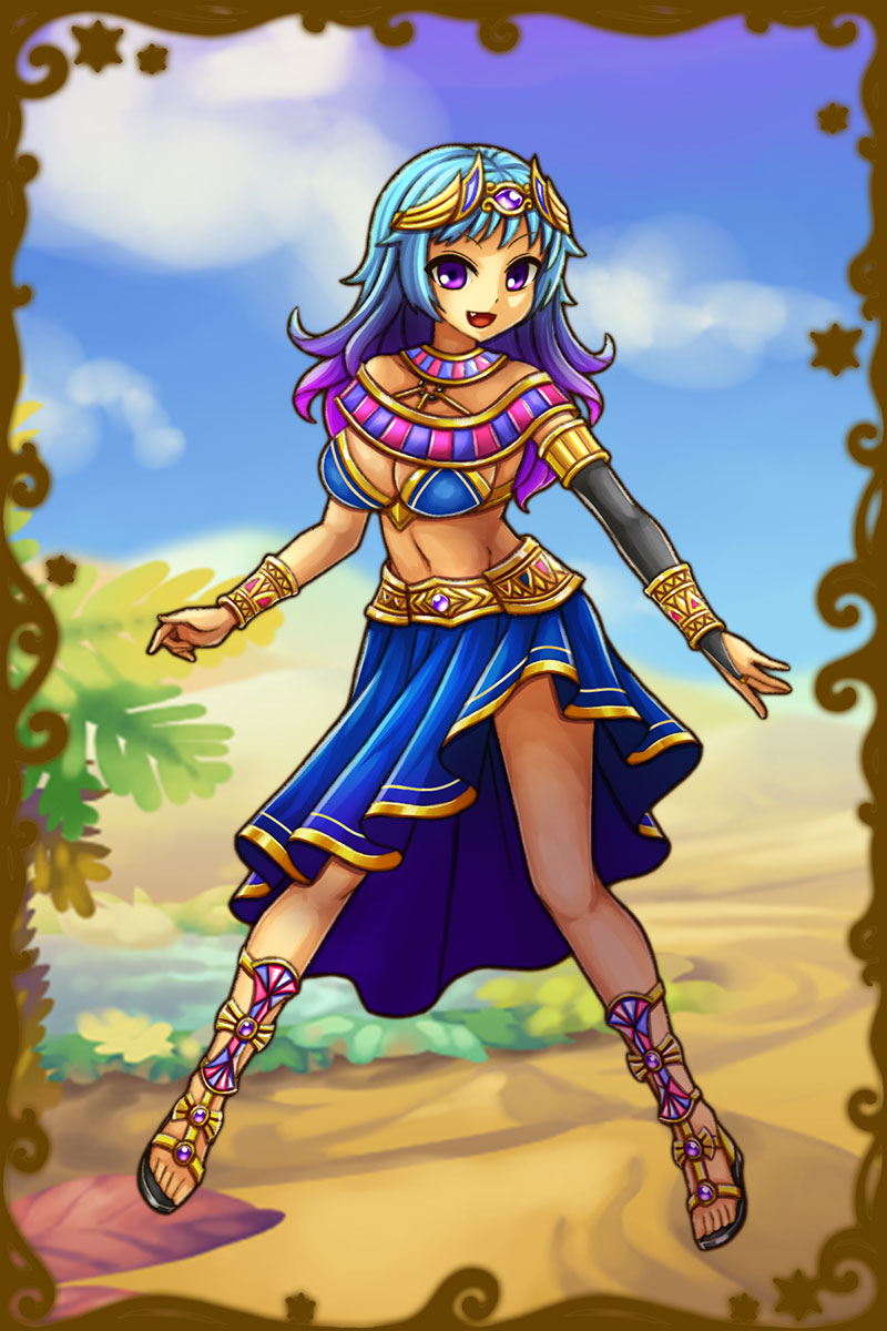 - 初期状態 :ナイル川の洪水女神。戦士。クヌム、アヌケトとならんで3柱神と呼ばれる。考えるよりもまず行動してしまう。トラブルを起こしがちだが、憎めない性格。問題が起こってもいつもなぜか何とかなってしまうらしい。
