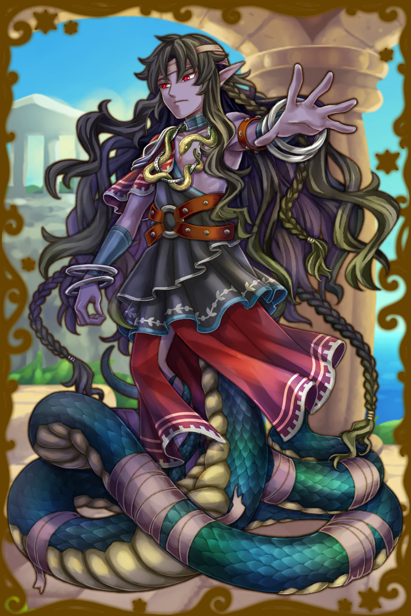 - 初期状態 :ゼウスの宿敵で、エキドナの夫。オルトロスやケルベロスなど数多くの怪物の父親。全体的に能力値が高いがゆえに、度胸が据わっている。睡眠欲が薄く睡眠時間が非常に短い。雨や嵐の好み、いつも日の当たらない場所にいる。