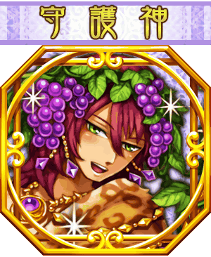- 初期状態 :豊穣、葡萄酒と酩酊を司る神。葡萄酒の製造方法を人々に伝え、造られた美味しい酒を飲むのが好き。落ち着いた性格だが、酔うと…?