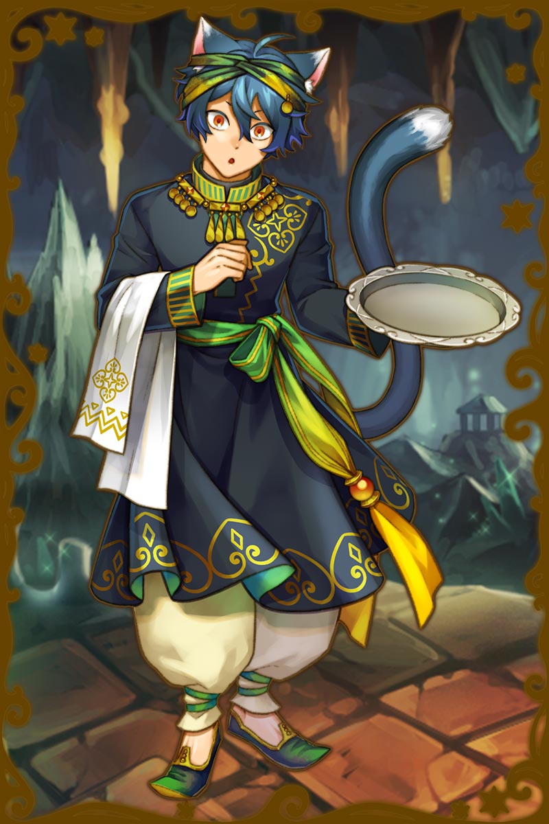 - 初期状態 :良き木の主を意味する治癒の神で、エレシュキガルの宮廷執事。察しがよく、何も言わなくても相手の望む行動ができるタイプ。何があっても取り乱さない、強い精神力を持っている。誰にでも丁寧な態度を取り、敵を排除する際も物腰が柔らかい。