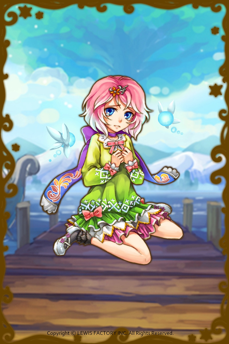 - 今日のリボン、何色にしようかな…ピンクが好きだけど、青もいいし…やっぱり青…うぅ、ボク決められないよ、ミーミル…(親密度前半)