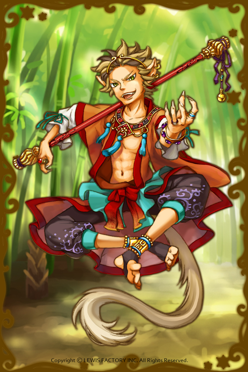 - 初期状態 :猪八戒、沙悟浄とともに三蔵法師を守り、西域への冒険を果たした。仙術と武術に優れているが、己の欲望に忠実な暴れん坊。