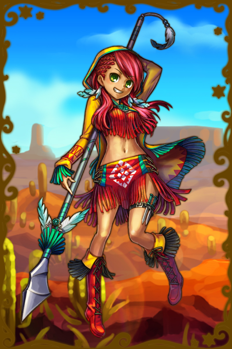 - 槍はいっつも持ち歩いてるよ、女子のたしなみとして必要不可欠でしょー。んー?戦いに使うの、って?違う違う。遠くのもの取るのに使ったり、ストレッチに使ったり、高い壁を乗り越える時の棒高跳びで使ったり!めっちゃ便利。(親密度前半)