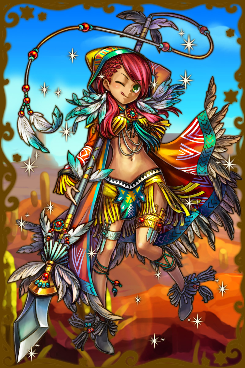 - アウィテリンツタが困ってたって?なんでー?ああ、こないだの強風で物干し竿がどっか飛んでちゃったのか。大変だなー。あっ、そうだ。アタシのこの槍、持ってってあげていーよ。洗濯物干すのにちょうどいい長さなんじゃない?(親密度前半)