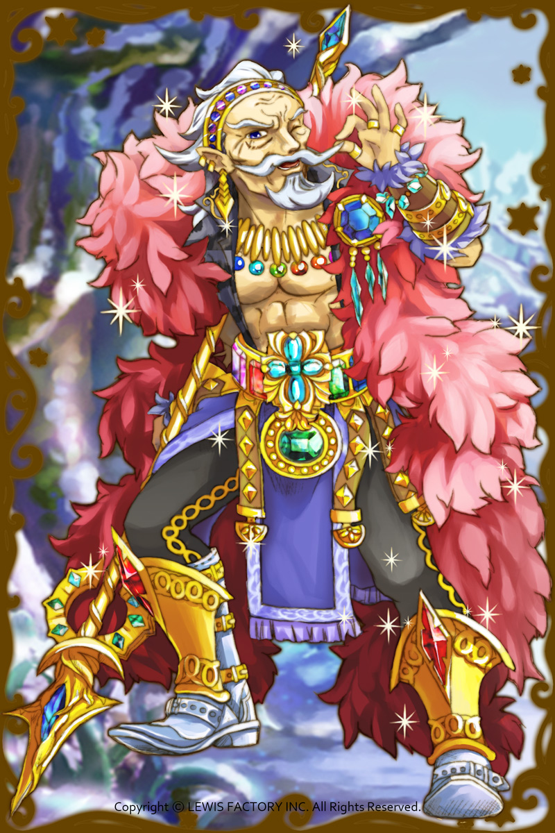 - お主、疲れた顔をしておるのう?そんな時はワシとレッツダンシングじゃ!踊れば疲れも悩みも吹き飛ぶぞ!踊ったら美味いものと酒を飲んで気分リフレッシュじゃ!さあ、そうと決まれば今日は踊り明かしてフィーバーしまくるのじゃあ!(親密度前半)