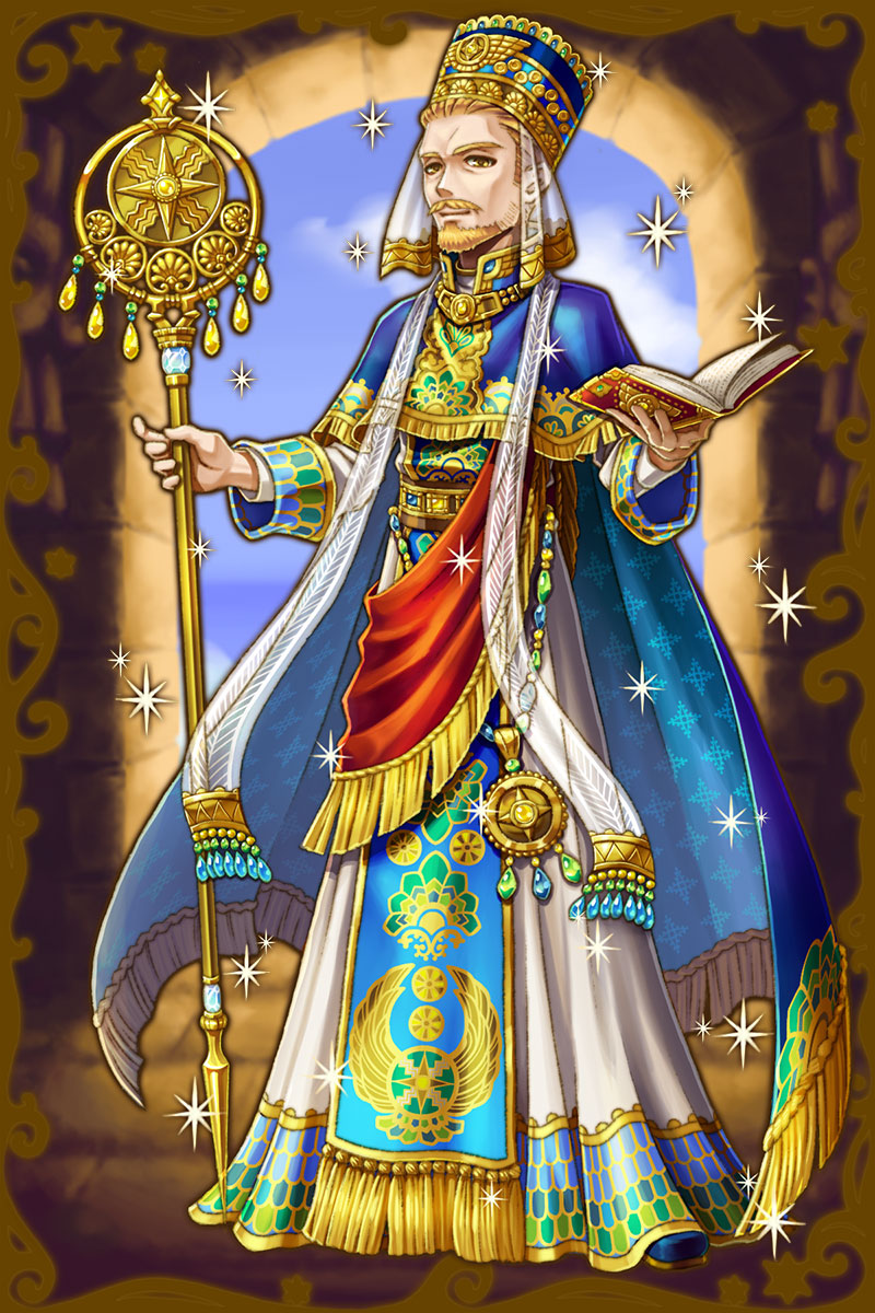 - 初期状態 :バビロニア帝国の初代王。メソポタミアを統一し、ハンムラビ法典を制定した。厳格で頭が固く、不正をするものには容赦しない。清廉潔白で、自分自身もルールを厳守する。犯罪者が相手であっても、すでに罰を受けた者であれば他の者と分け隔てなく接する。