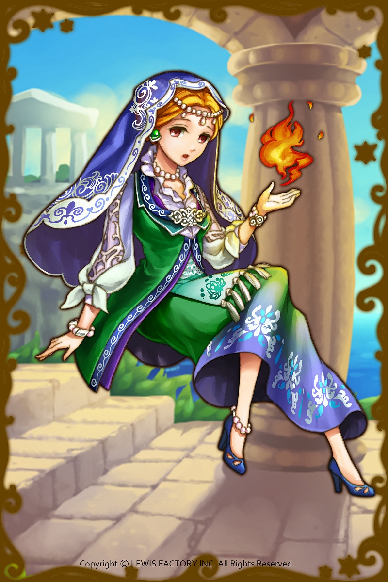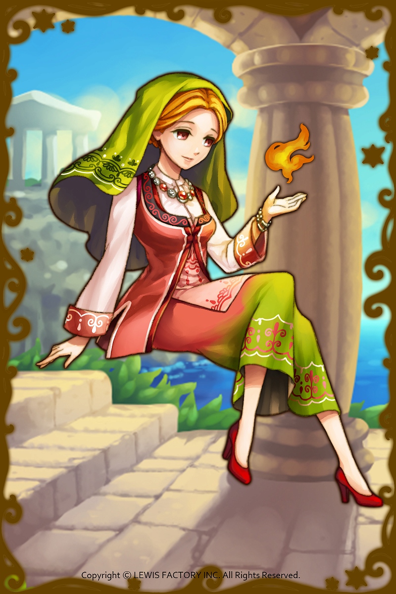 - 初期状態 :ギリシャ神話の炉の神。心優しく包容力があり、落ち着いた上品な女神。他のギリシャの神様たちを優しく見守っている。
