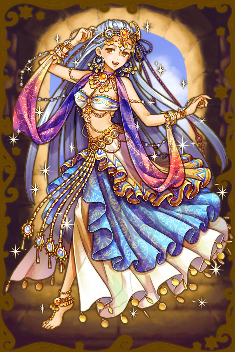 - 初期状態 :月と夜を司る女神。はつらつとした明るい性格で、体を動かすことが好き。裏表がなく素直なので、騙されやすい一面もあるが本人は気にしていない。ダンスが好きで、みんなを笑顔にするために踊っている。周りの神々にも好かれているが、よく心配されるのが少し不満。