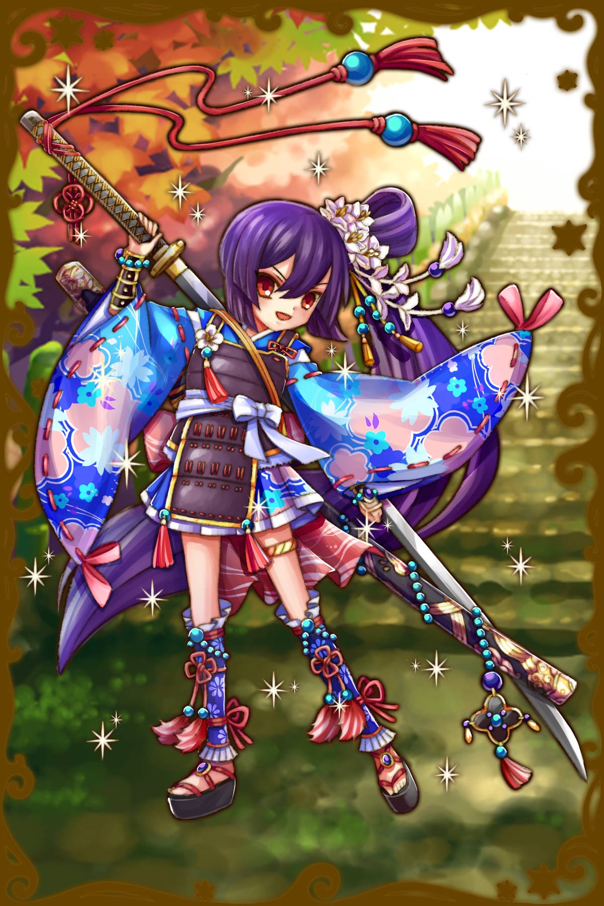 - 初期状態 :礼儀正しく正義感の強い女神で、小さな身体で振るう武器は身の丈はある大太刀。小さいことを気にしており、身長のことに触れると激怒する。男兄弟の中で育ったため、一人称が男の子のようになっているが本人は気にしていない。